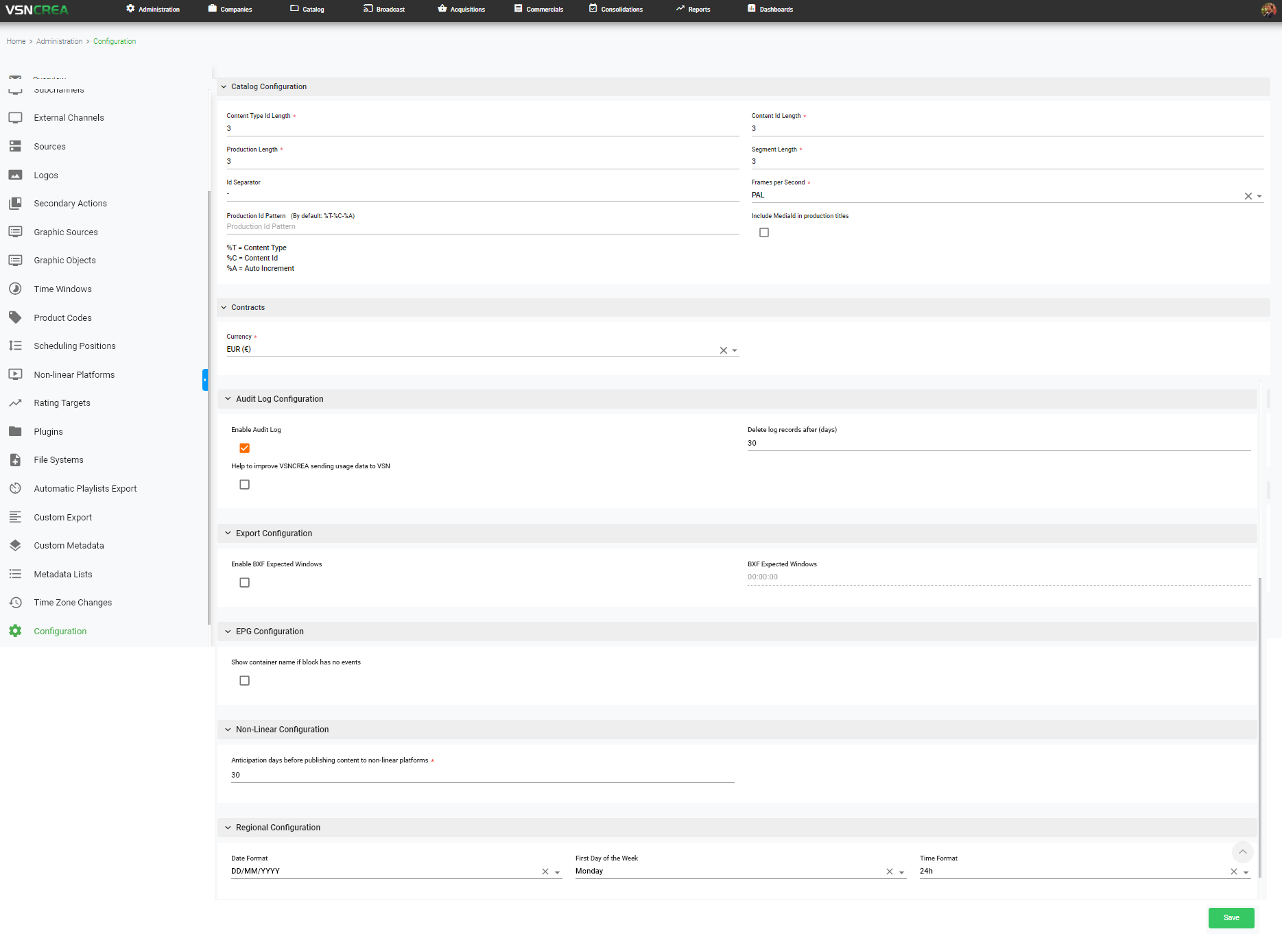 In this section, you will be able to configure general parameters of your tenant / organization such as currency, frame format, etc.