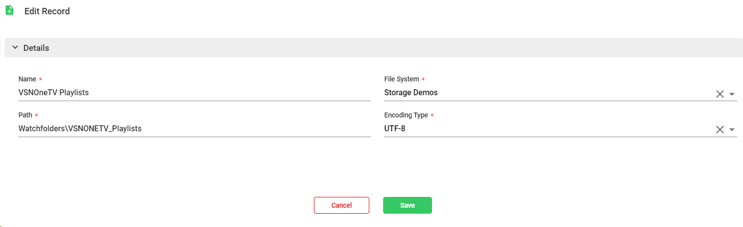 Path. Introduce the path of the folder (for example: "Watchfolders\Playlists")