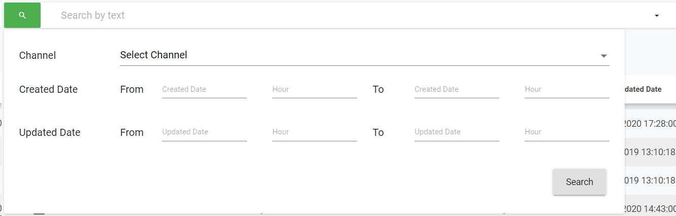 Click the drop down menu to display the filtering options. You can filter the graphic sources by channels and dates. Select your filters and click on the "Search" button.