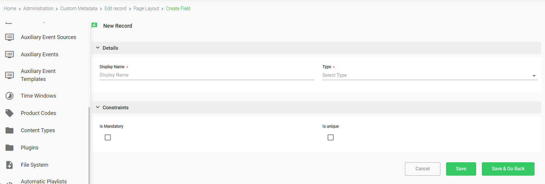 Display Name. Introduce the name that will be displayed for the new metadata field.
