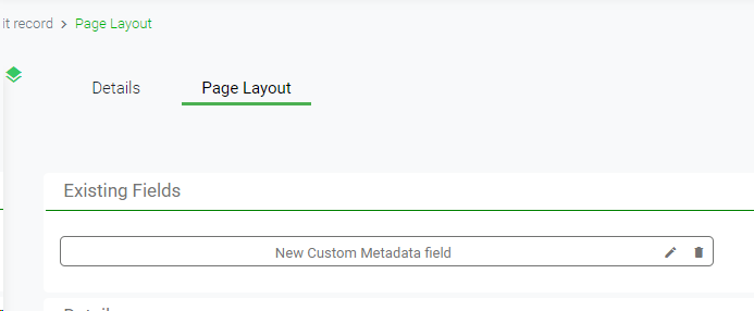 In this section you will learn how to modify the page layout of the metadata entities, to add new sections and to create, modify or delete metadata fields. At the end, configure the forms layout of that specific metadata entity.