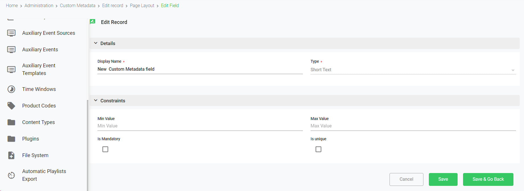 Click on this icon to edit the custom metadata field. This will open the Edit Field form: