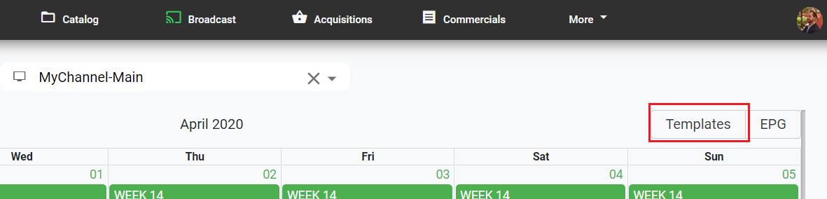 In the Broadcast module, once selected the subchannel, click on "Templates" button