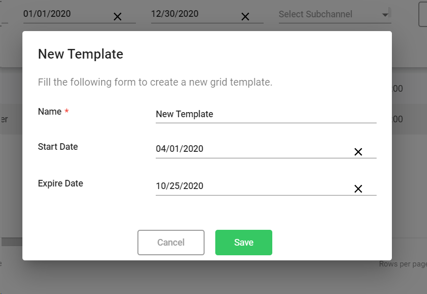 Start Date. Pick a date from the calendar, when the template will start to be available. This date should be the first day of the week, that will depend on the format settings of the channel. For more information go to Channels