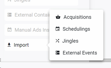 2. Once you have the external containers in the playlist, click on Import >> External Events .