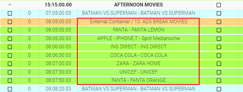 5. If the related subchannel has a created playlist in the same day with events in the specific containers, they will be automatically imported and inserted in the specific block: