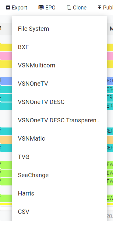 You can also use custom export types for the EPGs, that will appear in the available list. To create custom formats, go to Administration >> Custom Exports