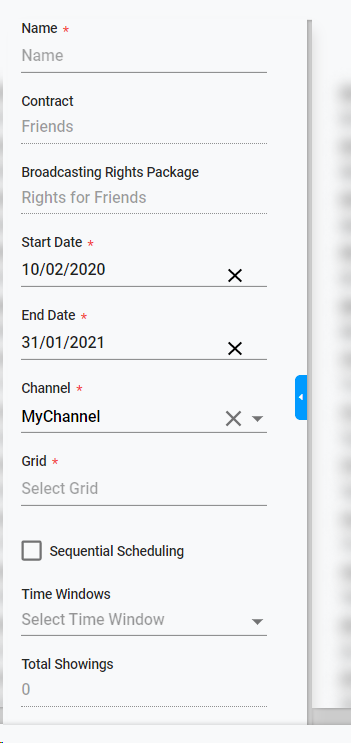 Sequential Scheduling. Check this box if you want to schedule a whole serie of episodes in a sequential way. Uncheck if you will schedule specific productions. The productions are already set in the related Broadcasting Rights Package.