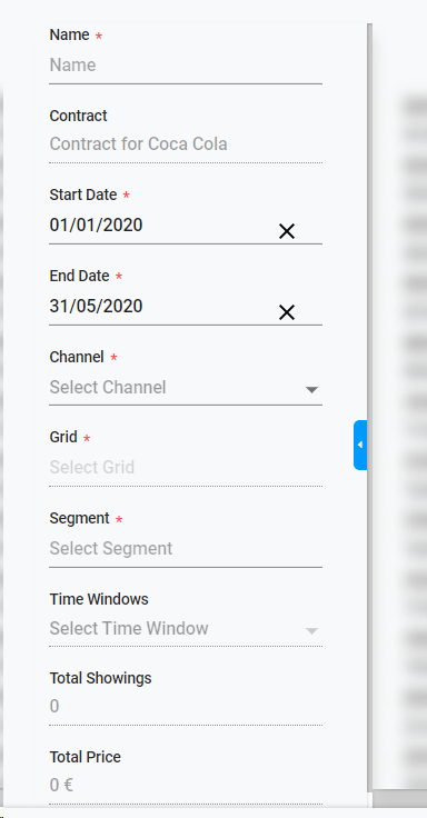 Segment. Select a segment belonging to a production from the catalog. The catalog will only show the Advertisement types.