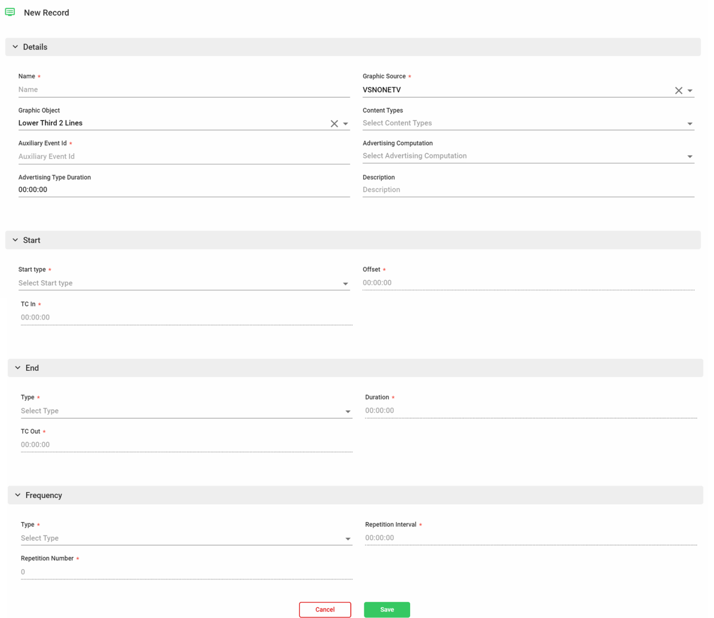 Frequency. Decide if the graphic object will be repeated while the main event is on air.