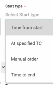 TC In. Only if "At specified TC" is selected as Start type. Introduce a TC In in HH:MM:SS