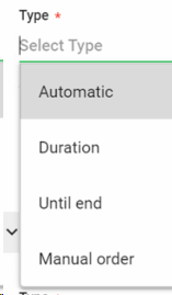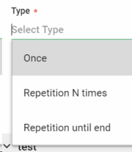 Duration. Only if "Duration" is selected as End type. Introduce a duration in HH:MM:SS