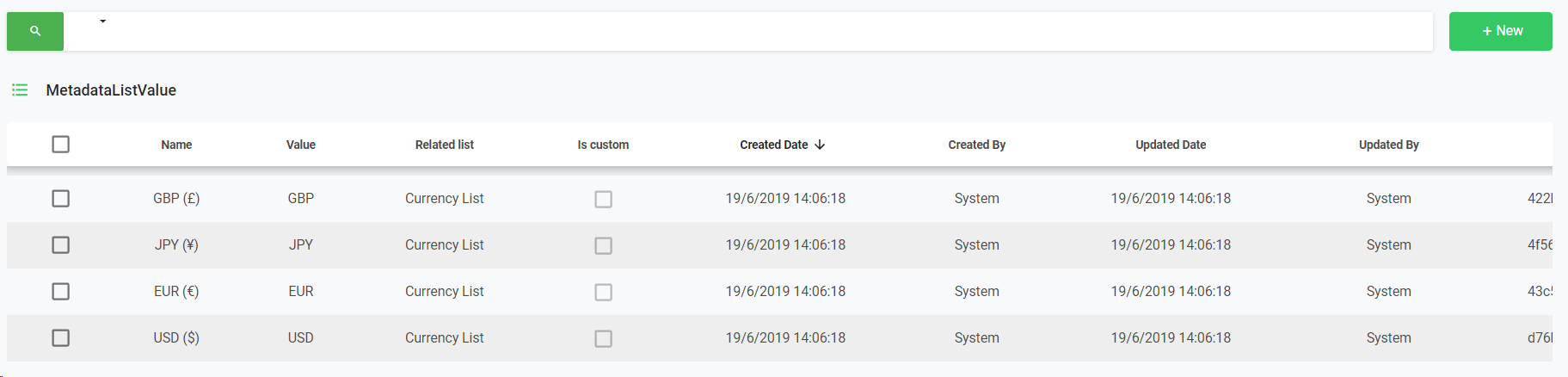 This will show a list with all the values related to the Metadata List, where you can add, modify or delete them.