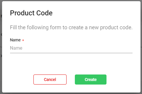 Click to create a new Product Code. This will open a dialog to introduce the name of the product code: