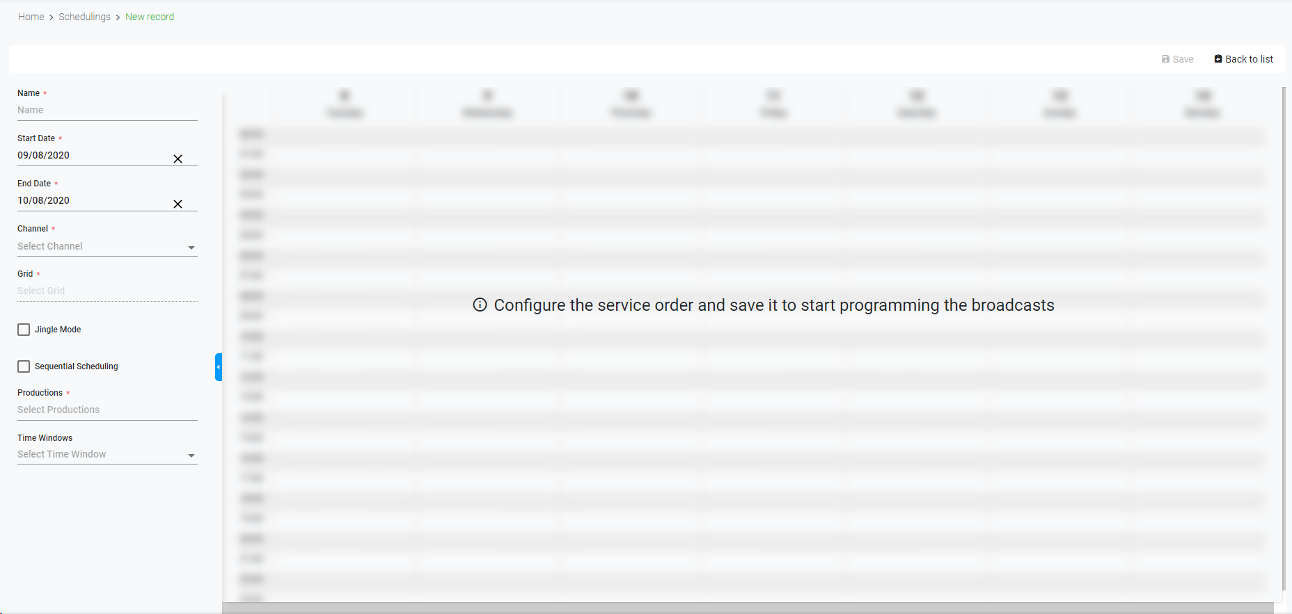 Grid . Select a grid or template that will be used as base for the scheduling content in its blocks.