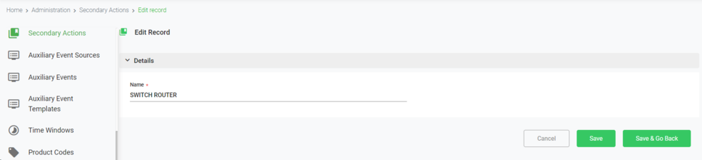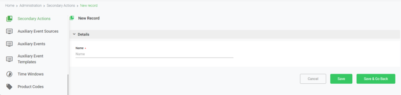 To cancel the operation, click "Cancel". To save the changes and keep in the creation form, click "Save". To save the changes and go back to the previous list, click "Save & Go Back".