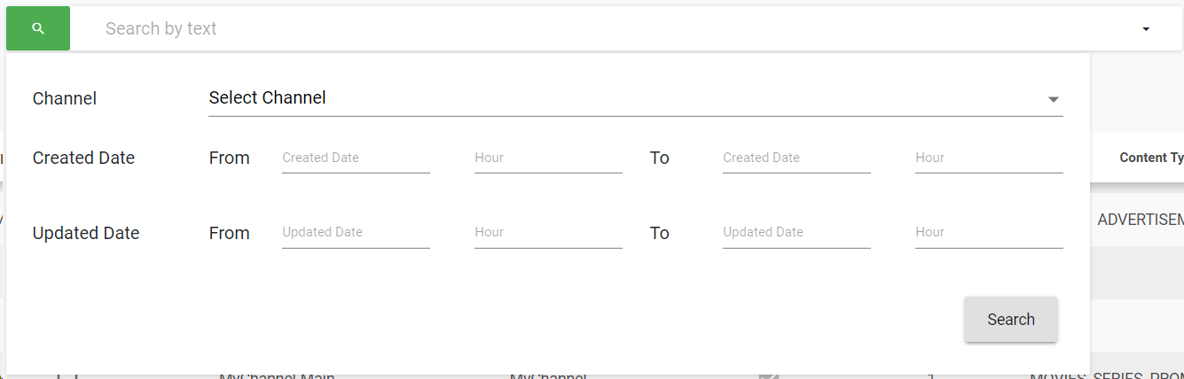 Click the drop down menu to display the filtering options. You can filter Subchannels by their Channel. Select your filters and click on the "Search" button.